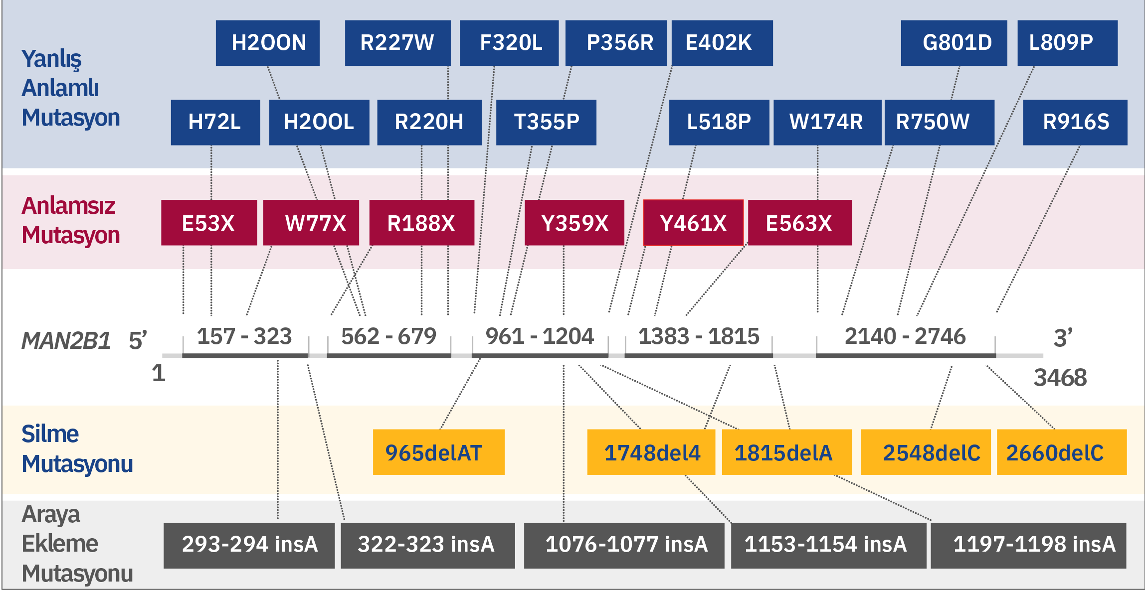 Alfa mannosidaz, lizozomal α-mannosidazı2 kodlayan MAN2B1 (LAMAN) genindeki kalıtsal mutasyonlardan kaynaklanır. Alfa mannosidoz otozomal resesif geçişlidir. MAN2B1 geni 24 ekzondan oluşur ve endoplazmik retikulum2 içinde post-translasyonel olarak modifiye edilen 1011 amino asitlik bir polipeptidi kodlar. MAN2B1’in olgunlaşması ve lizozomlara endozomal taşınması sırasında, proteolitik olarak sırasıyla 70, 42 ve 15 kDa’lık “abc”, “d” ve “e” adlı üç ana polipeptite ayrılır1. Daha spesifik olarak, 70 kDa alt biriminin işlenmesi, toplam beş farklı polipeptit ile sonuçlanır. MAN2B1 ekspresyonunun seviyesi en yüksek akciğer, böbrek, pankreas ve periferik kan lökositlerinde görünüyor1. CNS’de en yüksek ekspresyon seviyesi korpus kallozum ve omurilikte görülürken, serebellum, serebral korteks, frontal ve temporal lobları içeren daha büyük yapılarda oldukça düşük seviyeler gözlenir. Ancak, bu tür varyasyonların önemi (varsa) şu anda net değil1.